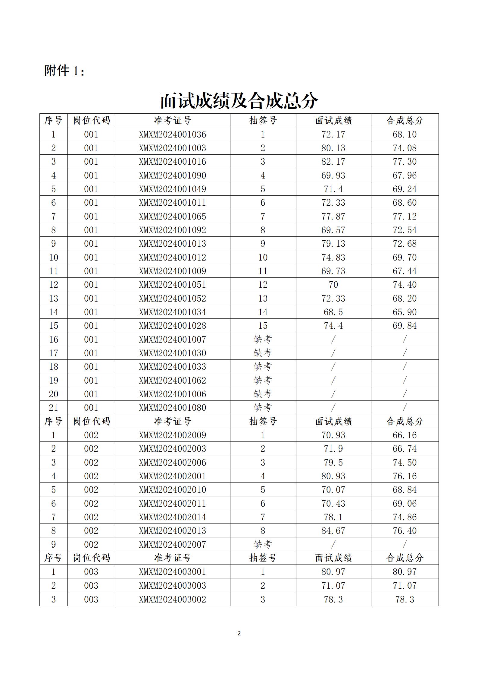 一、面试结果及合成总分(详见附件1)。