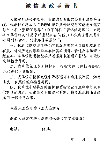 诚信廉政允许书及其他相关模板